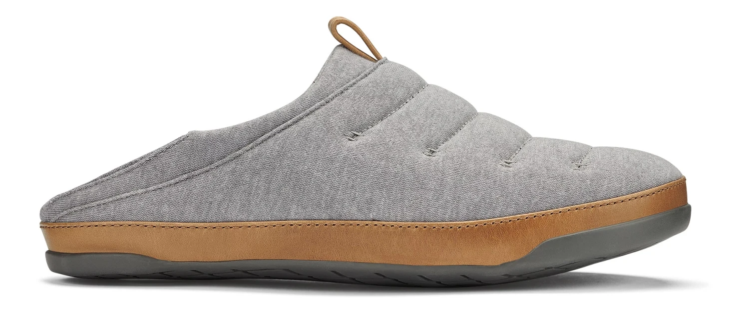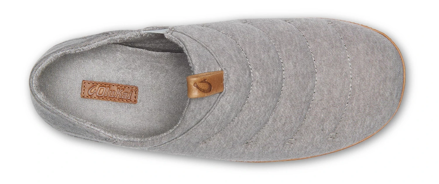 Men’s Olukai® Mahana :: Cotton/Poly blended jersey upper with light insulation sandwiched between a soft anti-bacterial cotton/poly-terry cloth lining. Leather pull loop and drop in heel construction on a full grain leather foxing.