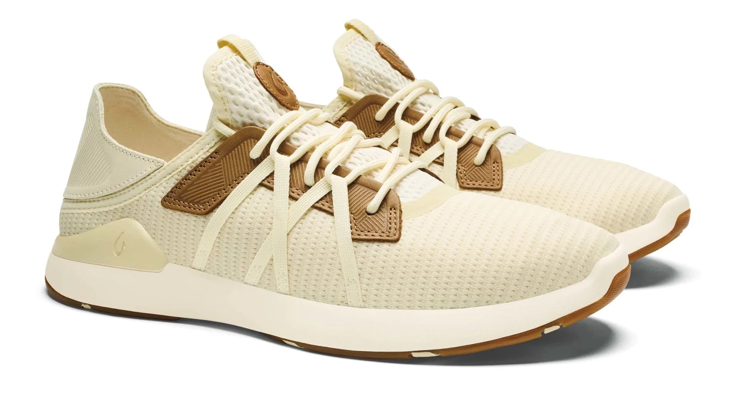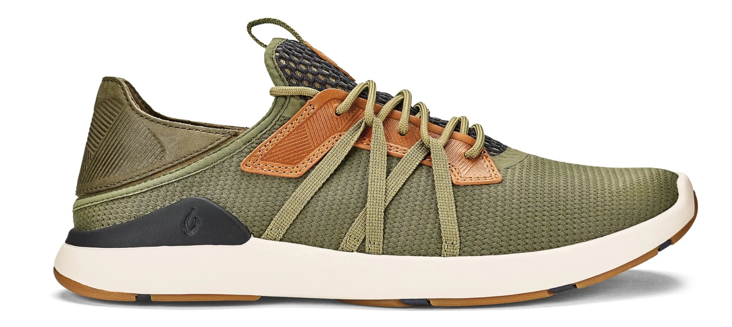 Men’s OluKai® Mio Li :: A breathable upper mesh with stretch tongue and eye stays adorned with premium embossed leather, lacing system integrating eye stay and webbing anchor strap, leather Drop-In Heel and soft microfiber suede lining.