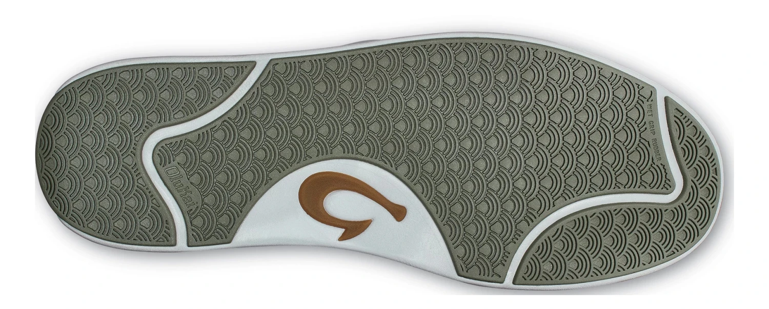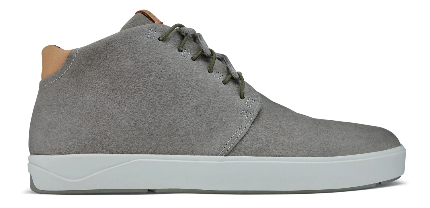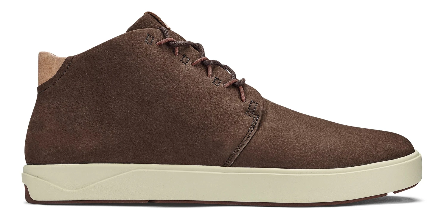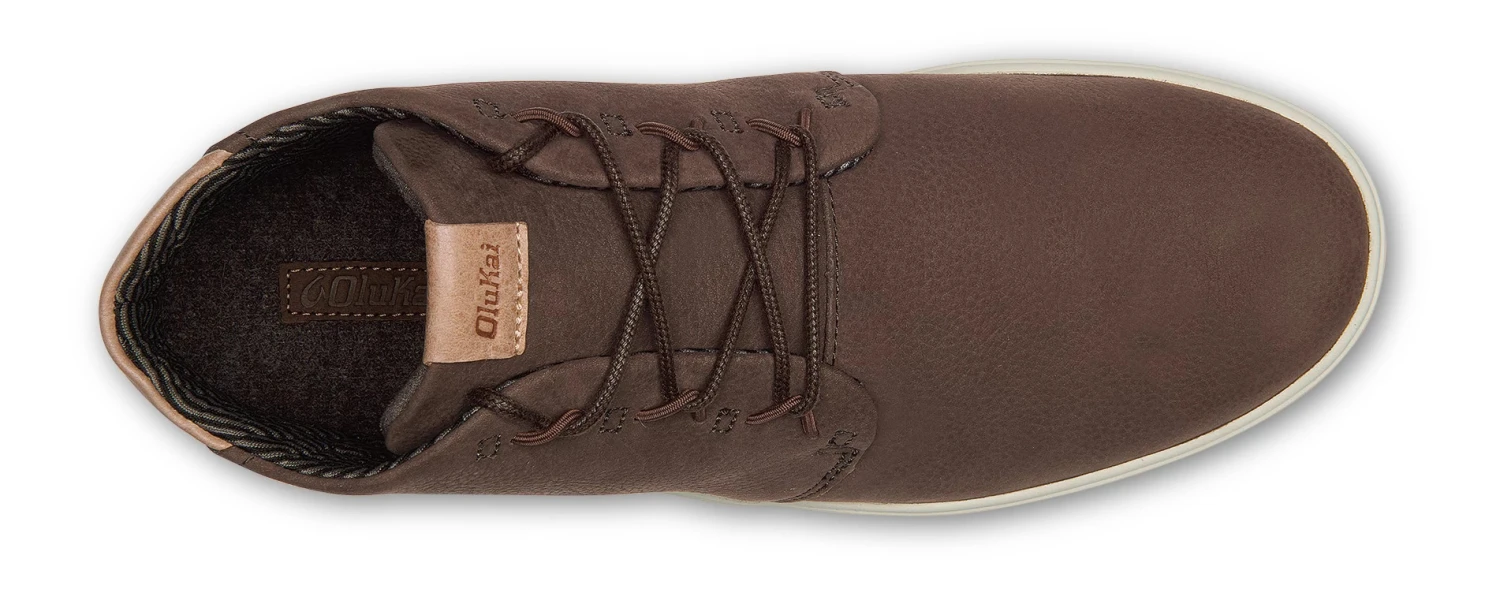 Men’s OluKai® Nana Hele :: Matte finished pebbled waterproof leather upper with elastic ghilleys and lace up construction. Quilted heel and quarter lining is combined with a twin faced shearling lining in the forefoot.