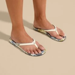OluKai Craftsmanship: Custom stitching and delicate floral artwork on the slide reflect meticulous attention to detail, adding a distinctive handcrafted touch.